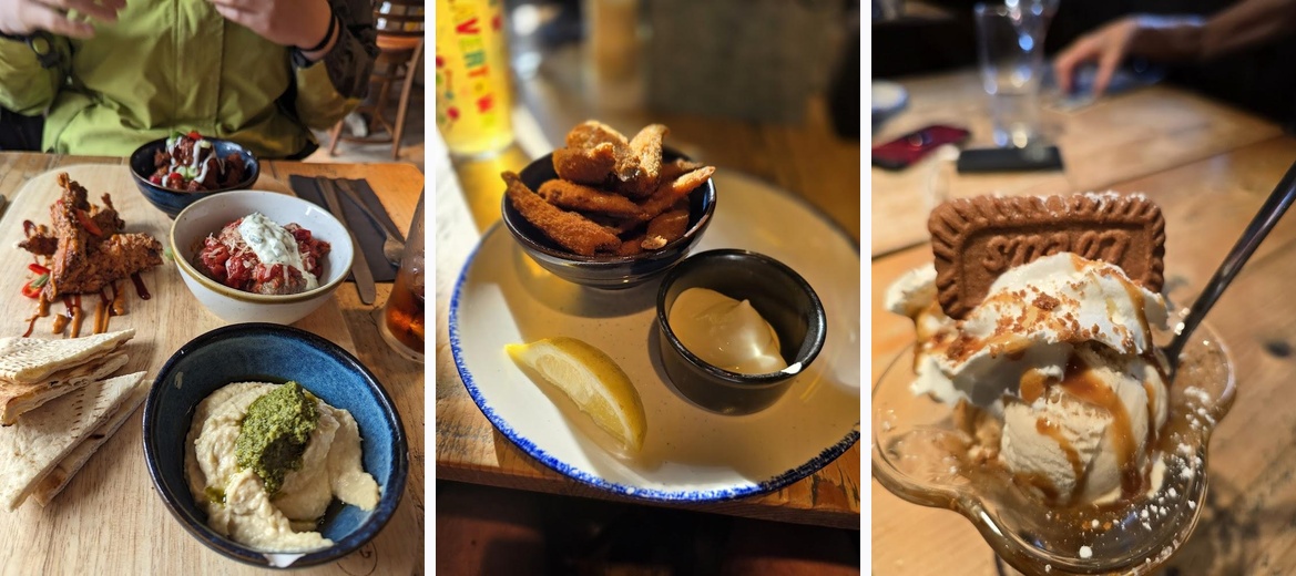 The food was superb. We loved the haloumi and bbq cauliflower kebabs. Service was first class with very friendly staff. There was a dog friendly area inside, which was great as we could get our Alaskan Malamute out of the sun. Would definitely there again.